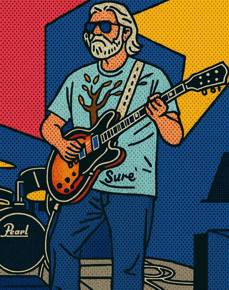 Like all guitarists Robbie has a collection, but mainly plays an early Ibanez Artcore AS73 which he has upgraded with Tonerider Vintage pickups and 1950's style electrics.